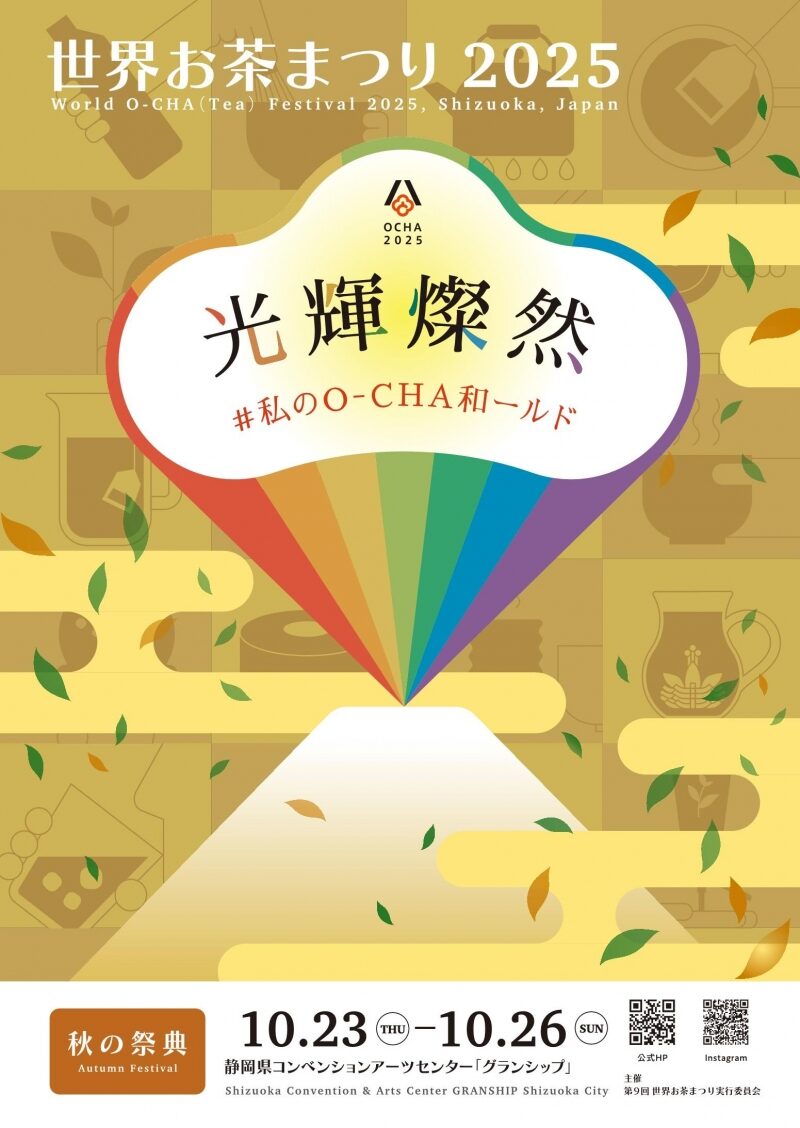 世界のお茶文化と静岡茶の魅力を一堂に集めた「世界お茶まつり2025 秋の祭典」が、静岡県コンベンションアーツセンター「グランシップ」で開催されます。テーマは「光輝燦然 〜#私のO-CHA和ールド〜」。お茶を通して世界と日本の文化をつなぐ、まさに“茶の万博”。会場では「ワールドO-CHAマーケット」「世界大茶会」「日本茶AWARD」など、見て・飲んで・体験して楽しめるプログラムが満載。ライブコマースやSweeTEAペアリング、フォトコンテストまで、五感で味わう“お茶の世界旅行”がここに広がります。